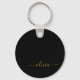Black Gold Modern Script Girly Monogram Name Key Ring
