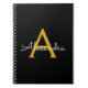Black and Gold Simple Script Monogram Name Spiral Notebook Planner. This makes the perfect sweet 16 birthday, wedding, bridal shower, anniversary, baby shower or bachelorette party gift for someone that loves glam luxury and chic styles.