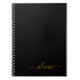 Black and Gold Simple Script Monogram Name Spiral Notebook Planner. This makes the perfect sweet 16 birthday, wedding, bridal shower, anniversary, baby shower or bachelorette party gift for someone that loves glam luxury and chic styles.