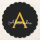 Black Gold Modern Script Girly Monogram Name Paper Coaster