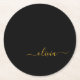 Black Gold Modern Script Girly Monogram Name Round Paper Coaster