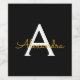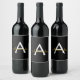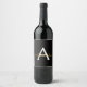 Black Gold Modern Script Girly Monogram Name Wine Label