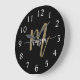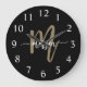 Make a statement with the Black and Gold Modern Script Monogram Name Large Clock. Featuring a sleek black design with a bold gold monogram in a modern script font, this large wall clock combines luxury and functionality. With its elegant design, it seamlessly enhances any living room, office, or bedroom while providing clear timekeeping. The personalised monogram adds a unique, stylish touch to your space, making it the perfect gift or addition to your home decor.