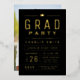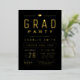 Modern and minimal typography fun graduation party invitation in real gold foil and colour editable black background, Custom it with your own text and party information.