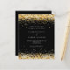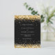 A modern wedding invitation. Black background decorated with faux gold confetti. Personalise and add your names and wedding details. White coloured letters.