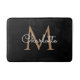 Black Gold Monogram Elegant Girly Script Bath Mat