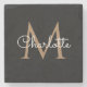 Black Gold Monogram Elegant Girly Script Stone Coaster