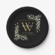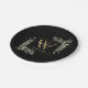 Black Gold Monogram Elegant Modern Greenery Paper Plate