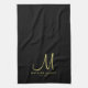 Black Gold Monogram Family Name Modern Elegant Tea Towel