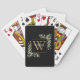 Elegant watercolor greenery leaves monogram name playing cards featuring a gold monogram initial on a chic black background. Designed by Thisisnotme©