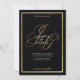 Black gold monogram initials romantic wedding invitation