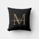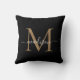 Black Gold Monogram Modern Stylish Feminine Script Throw Pillow