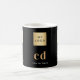A classic black background. Personalize and add your business logo (3), a name and monogram initials (3). The name is written in white with modern white and golden block letters.