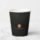Luxury monogrammed paper cups with a black leather look background and a faux gold copper metallic brushed square with elegant script signature name and monogram initials. ++++++++++++++ Easy to personalise creating your own logo with your business or personal initials and name. +++++++++++++ Could be an elegant personalised business corporate disposable drinkware for a networking event or for office guests or a modern branding essential for your office bar.