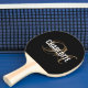 Modern ping pong paddle with an elegant black background, a scripted golden monogram and a white typography name. Personalise with your name and monogram.