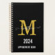 Custom Elegant Black and Gold Monogram Script Appointment Book Planner