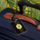 This luggage tag feature is black with gold accents. Click on the CUSTOMIZE IT button to change, move, delete, resize any of the graphics or add your own text, font and font colour.