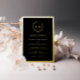 Elegant & classic monogram wreath black and gold wedding invitation.