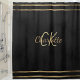 A black background decorated with faux gold stripes. Personalise and add your monogram initioals and first name.