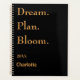 A black coloured background. The motivational quote: Drem. Plan. Bloom. Personalise and add your name and year.