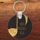 Black gold music notes monogram name keychain