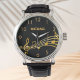 Simple and elegant for a music lover or musician! Black background with faux gold music notes. Template for your name, golden letters. Golden clock numbers.