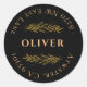 Black Gold Olive Branche Drawing Monogram Return Address Classic Round Sticker.