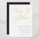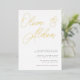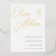 A beautiful typography based wedding invitation featuring your names in oversized gold foil script lettering at the top. Personalise with your wedding details in classic serif lettering aligned at the lower right. Our Ash colorway makes a classic statement with soft black and rich gold foil lettering on a crisp white background.