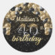 Black Gold Personalised 40th Birthday Classic Round Sticker