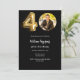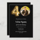 A modern, minimalist photo invitation for a 40th birthday party. A classic black background. Personalise and add a photo and party details.