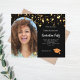 Add your own vertical size photo of the graduate. A photo arch frame. A classic black background colour, decorated with faux gold stars. Personalise and add a name and party details.