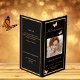 An elegant 4-page program. A black background, a faux gold frame and space for your photo. Decorated with 3 golden butterflies. Personalize and add name, dates and your text.