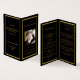 An elegant 4-page program. A black background, a faux gold frame and space for your photo. Personalize and add name, dates and your text.