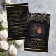 A classic background, a faux gold looking frame and space for your photo. Decorated with black and golden florals. Personalise and add name, dates and your text. Golden text.