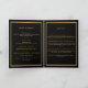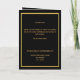 An elegant 4-page program. A black background, a faux gold frame, and space for your photo on the front. Personalise and add name, dates and your text. Golden text.
