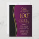 Invite your friends and loved ones with this modern black, gold and pink surprise 100th birthday party invitation. The customisable text area in this invitation template allows you to effortlessly include all the necessary details for your special birthday celebration, including the date, time, venue, and RSVP information. A variety of paper types and corner styles are available for your unique invitations, along with the option to download if you prefer a digital format.