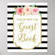 Please sign our guest book poster for baby shower, bridal shower, or wedding in black and white stripes pattern, glamourous gold vintage frame, pink and peach vintage flowers and hand lettered style text. Perfect for a baby shower, wedding, birthday or bridal shower.