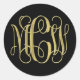 Black Gold Preppy Vine Script Monogram DIY BG Classic Round Sticker