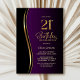 Invite your friends and loved ones with this modern black, gold and purple 21st birthday party invitation. The customisable text area in this invitation template allows you to effortlessly include all the necessary details for your special birthday celebration, including the date, time, venue, and RSVP information. A variety of paper types and corner styles are available for your unique invitations, along with the option to download if you prefer a digital format.