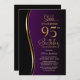 Invite your friends and loved ones with this modern black, gold and purple surprise 95th birthday party invitation. The customisable text area in this invitation template allows you to effortlessly include all the necessary details for your special birthday celebration, including the date, time, venue, and RSVP information. A variety of paper types and corner styles are available for your unique invitations, along with the option to download if you prefer a digital format.