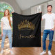 A faux gold queen princess crown, tiara on an elegant black background. Personalise and add a name, golden letters. The name is written with a modern hand lettered style script.