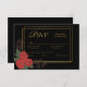 Black Gold Red Rose Floral Wedding RSVP Card