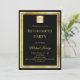 Celebrate the special milestone with this elegant retirement party invitation. Featuring a classic black background this design is highlighted by a faux gold frame. The golden-colored lettering adds a touch of sophistication, making it perfect for the occasion. Personalize it by adding your business logo, the retiree's name and all your party details to create a truly unique invitation.