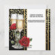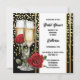 A beautiful, vibrant and luxurious faux gold confetti polka dot background on black has a glass of sparkling wine on it framed by pretty red rose flowers in full bloom. To the right of the glass is a white inlay bordered by vertical golden bands. Black text templates rest on the inlay for your custom wording. The back has the same design with additional templates for extra information you may want your guests and family to know. If not required, delete the wording to leave them blank. This stylish, modern, elegant and trendy design is ideal for any bridal shower; birthday, New Year or quinceanera celebration. Spoil the bride to be with this bespoke and timeless square invitation
