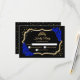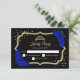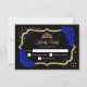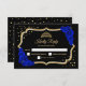 Gold black royal blue Quinceanera RSVP card. Features script font, roses, tiara and confetti. Classy response card with faux glitter gold. Perfect for an elegant glam celebration.
