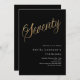 A modern, stylish invitation for a 70th birthday party for both him and her. Black background and the word Sixty written with large faux gold letters. Personalise and add a name and party details.