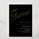A modern Sweet 16 invitation. Classic black background and the word Sixteen written with large letters in faux gold. Personalise and add a name and party details. White text.