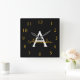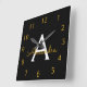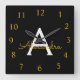 Black Gold Script Monogram Girly Name Square Wall Clock