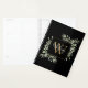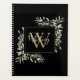 Elegant watercolor greenery leaves floral monogram name planner featuring a gold monogram initial on a black background with your name set in a stylish white script. Designed by Thisisnotme©