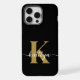 This simple, elegant black iPhone 15 Pro Max Case with your first name in a trendy script font in white and your first initial in a modern cap font in gold would look fabulous on your cell phone and will keep it protected from breakage. It's stylish and trendy and yet very classic.